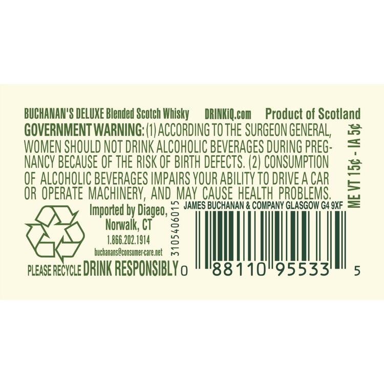 Born from over a century of experience, Buchanan's DeLuxe Aged 12 Years Blended Scotch Whisky is guaranteed to heighten any celebration. With notes of citrus fruits and honey, our 80 proof whisky features a sweet, smooth flavor with orange and chocolate notes. Matured for 12 years, our DeLuxe blend offers a lighter profile compared to denser whiskies. Our luxury whisky is crafted to the highest quality for a vibrant character. Buchanan's is proud to shine a light on the spirit of the 200%: those who proudly embrace both their 100% Hispanic heritage and 100% American culture all at once. Best enjoyed in a buchanita.