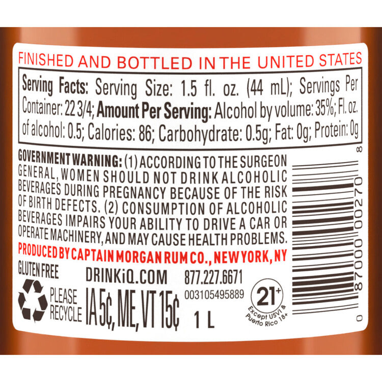Captain Morgan Spiced Rum Original Real Madagascar Vanilla 70 - 1.0L
