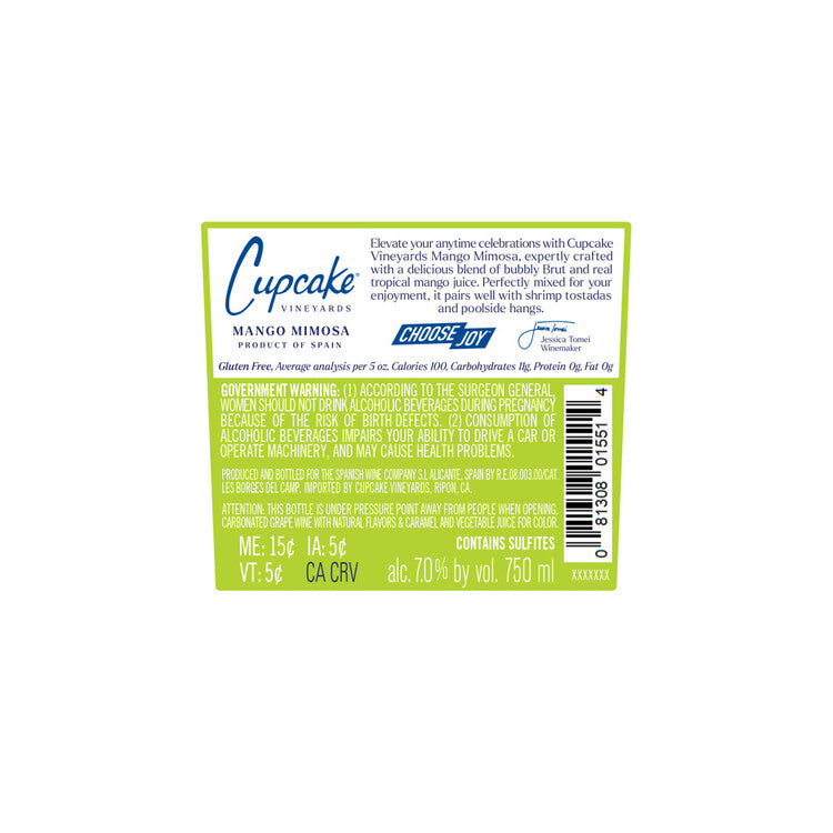 Our Cupcake Vineyards Mango Mimosa sparkling wine combines crisp, refreshing bubbles with vibrant tropical notes of freshly-squeezed mango juice. Balanced acidity leads to a juicy, long finish.