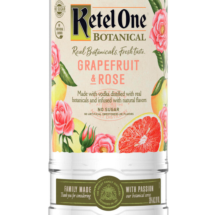 Ketel One Botanical Grapefruit & Rose is fit for those who seek zesty, mouthwatering grapefruit and the elegance of refined rose petals. Each botanical essence is individually and naturally obtained through innovative extraction methods and distillation processes for the freshest, cleanest, most crisp taste possible. With no carbs, artificial flavors, sweeteners or sugar*, our vodka is the mindful way to celebrate the weekend or relax with friends. Serve in a wine glass with ice, soda water and your choice of garnish for a refreshing tasting cocktail. Ketel One Botanical earned The Best New Spirits Product award by Market Watch Magazine in 2019. Please drink responsibly. *Avg. analysis per 1.5 oz.: 73 cal; 0g carbs; 0g protein; 0g fat
