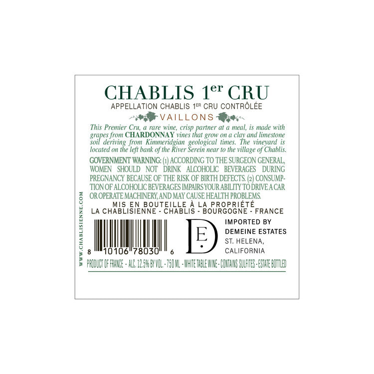 La Chablisienne Chablis Vaillons Premier Cru 2021 - 750ML