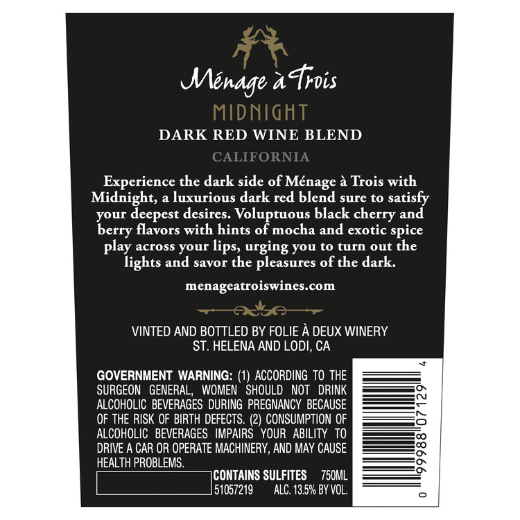Menage A Trois Dark Red Blend Midnight California - 750ML
