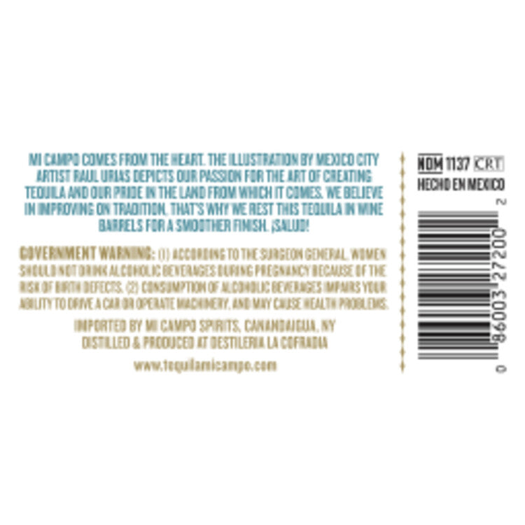 Tequila Mi CAMPO is a modern expression of the centuries-old art of tequila-making. What's in the glass is more than a spirit. It's history reimagined. Heritage grounds but doesn't limit; rather it blends with fresh ways of thinking for a new generation of tequila drinkers. Tequila Mi CAMPO is a confluence of passions - for handcrafted tequila, for culture, for the artisans who blend tradition with originality. The brand partners with evocative Mexico City illustrator Raul Urias, whose aesthetic brings the ethos of Mi CAMPO to life through his art.