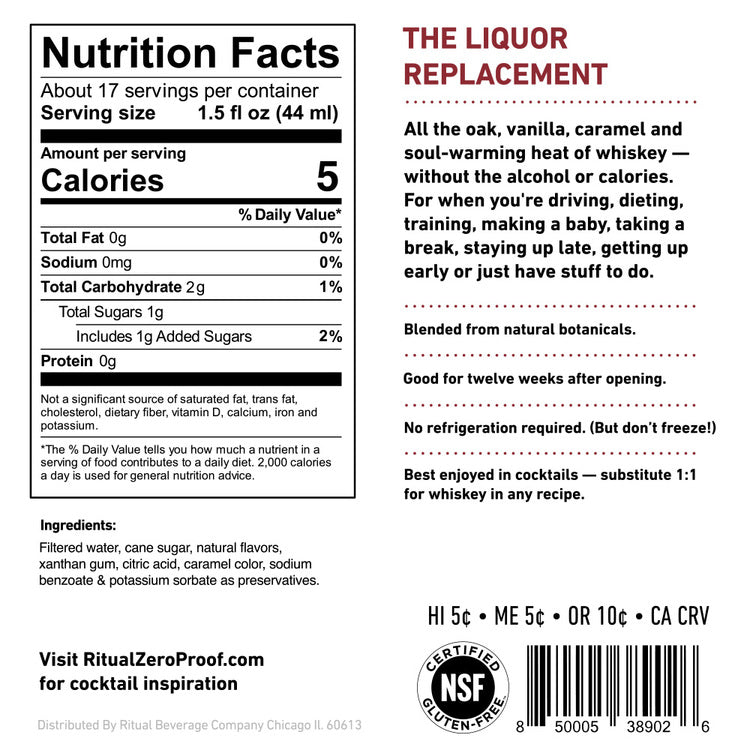 Ritual Zero Proof Whiskey Alternative Non-Alcoholic Spirit