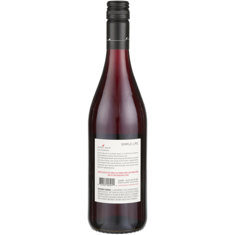 The Simple Life Pinot Noir is softly balanced with bright fruit and warm spice flavors. Our Pommard-based Pinot Noir blend opens with Bing cherry, thimbleberry, and vanilla pomegranate aromas on the nose that lead to baked cherries, raspberries,a nd subtle notes of cinnamon and nutmeg on the palate. One sip transports you to wine country without leaving your home.